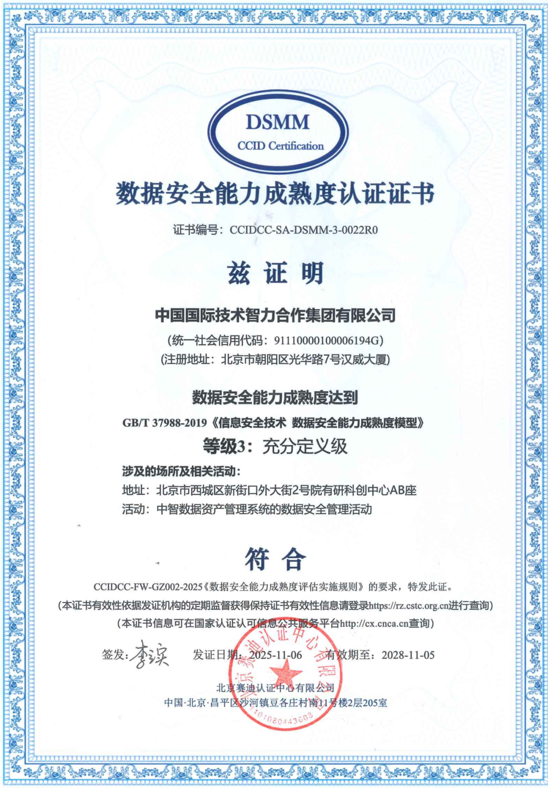 近日,中智集团顺利通过国家权威机构评估,成功获得数据管理能力成熟度(DCMM)与数据安全能力成熟度(DSMM)两项“三级”认证,标志着中智集团在数据管理体系建设与数据安全防护领域取得突破性进展,为赋能国资监管数字化、智能化升级提供坚实保障。